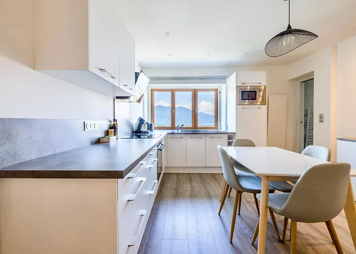 El apartamento Beauregard - Vue Lac & Montagne, Palace está amueblado con una cocina completa para la comodidad de los huéspedes. El alojamiento está a unos minutos a pie de la parada de autobús más cercana, Thermes Chevalley.